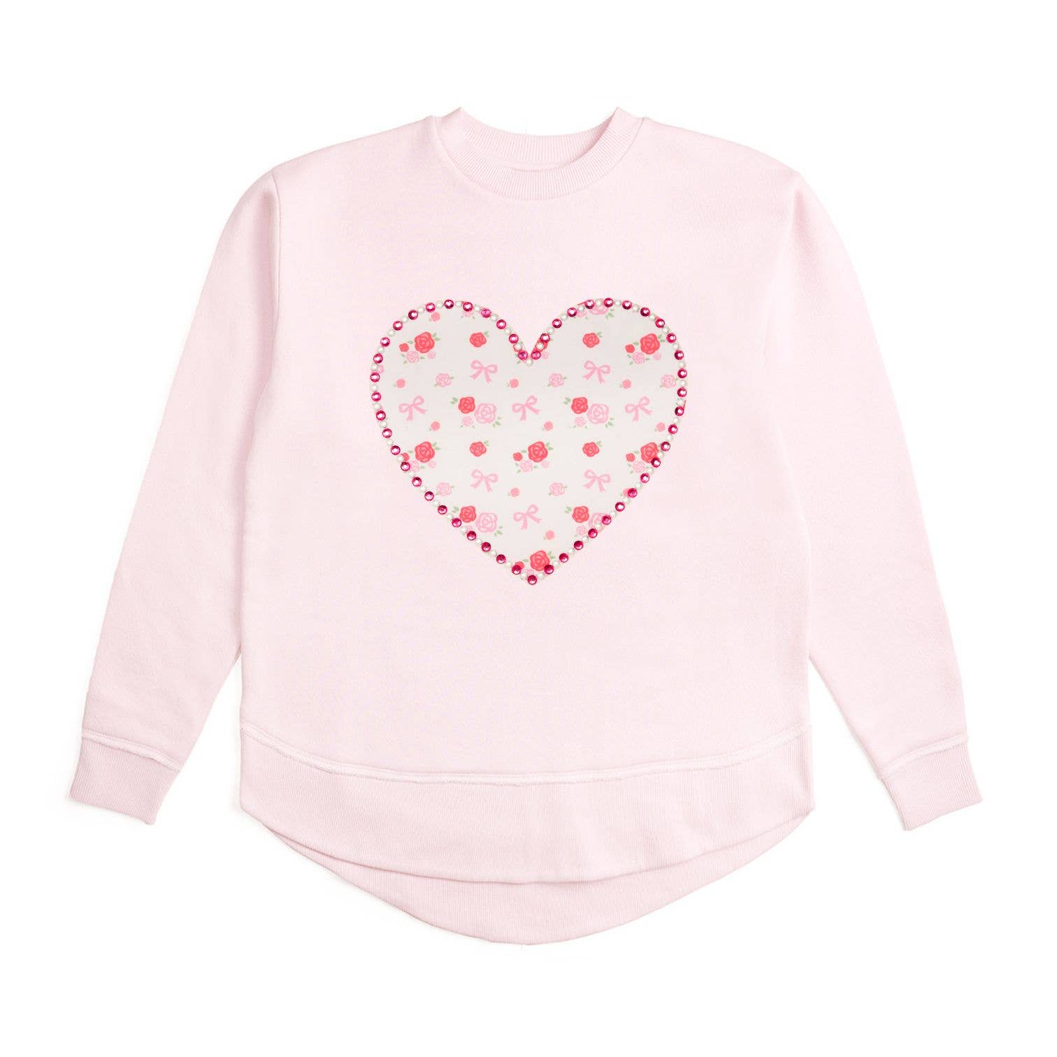 Dainty Rose Pearl Heart Patch Sweatshirt - Kids Clothing