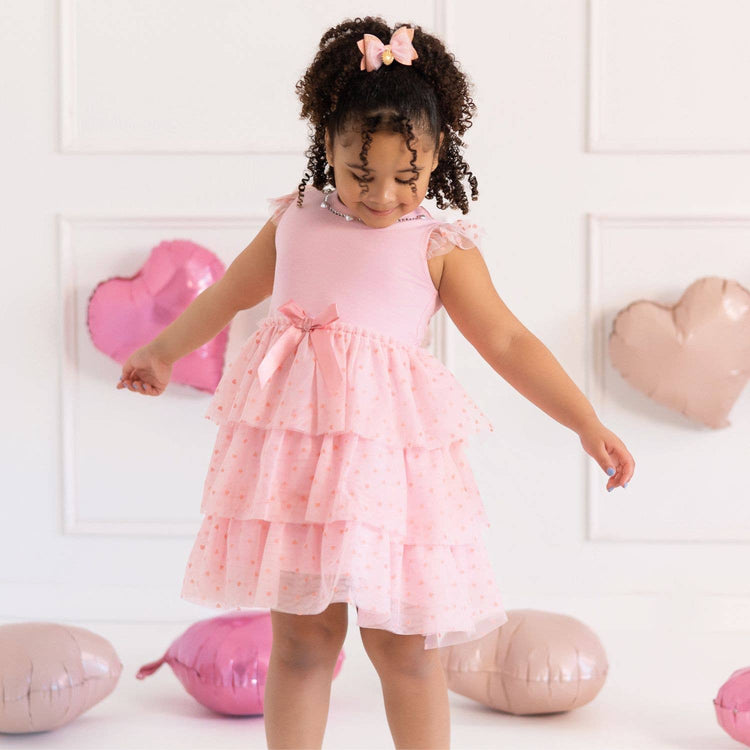 Flocked Heart Valentine's Day Tiered Short Sleeve Tutu Dress